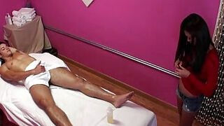 Asian handjob masseuse tugging
