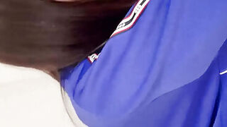 Sultry Japanese stunner flaunts her sugary cleavage in a delirious masturbation solo
